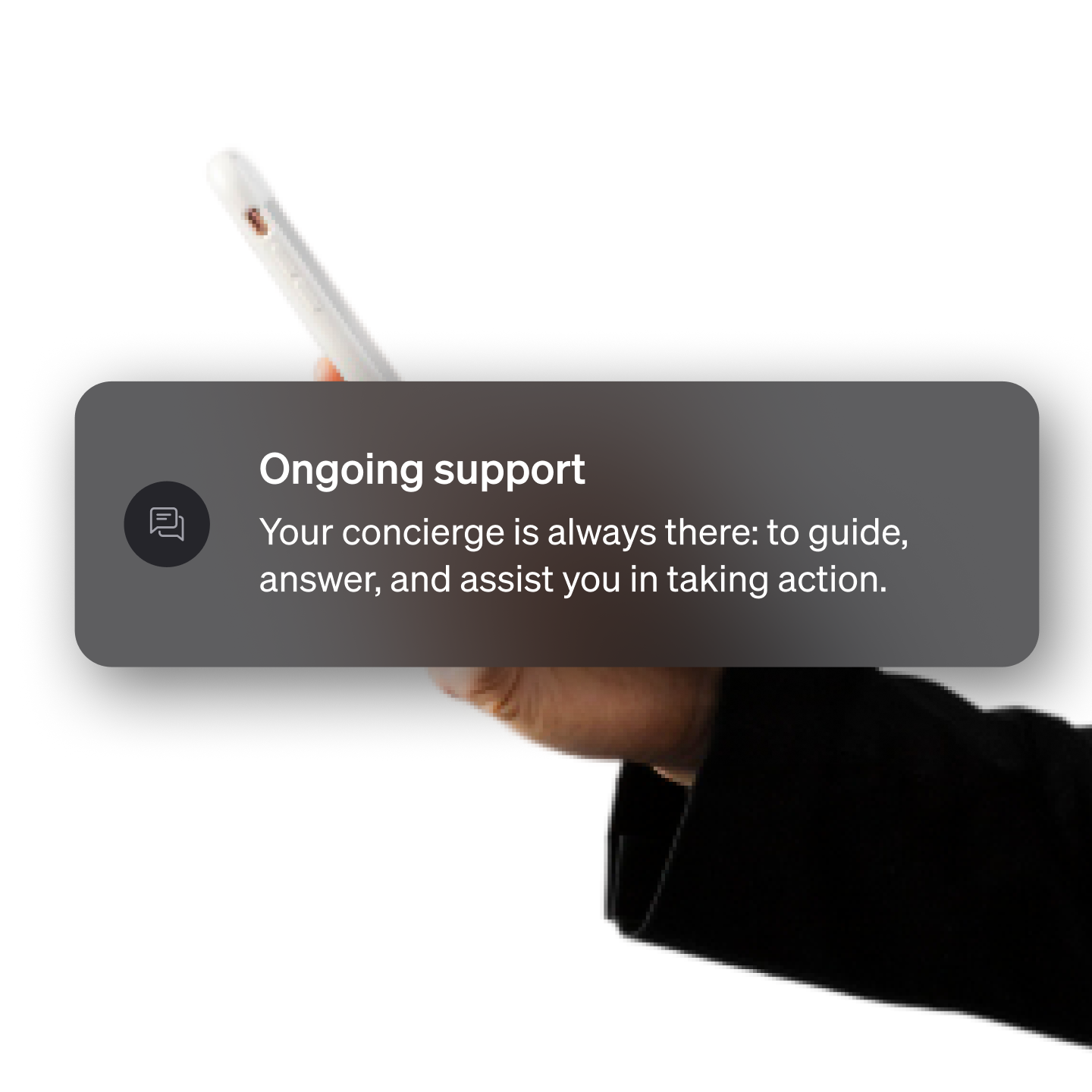 Unlimited concierge messaging for ongoing support, timely guidance, and remainders.